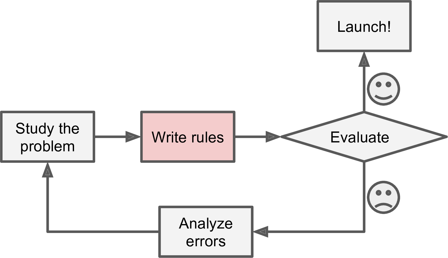 기존의 프로그래밍 방식은 어떠한 규칙을 Case로 나누어서 대응하는 코드를 하나하나 입력하는 방식이었습니다. 새로운 Case가 발생하면, 직접 Case에 대응하는 코드를 추가로 작성해야 했죠.