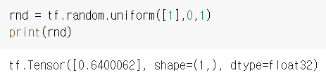 shape : 위에서 선언한 [1]은 return되는 난수의 모양(행과 열등의 차원)을 의미합니다.
