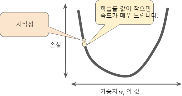 학습률이 너무 낮으면 학습시간이 매우 오래 걸립니다.