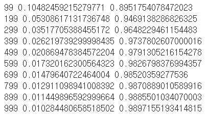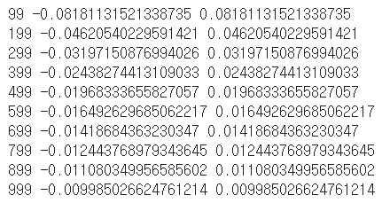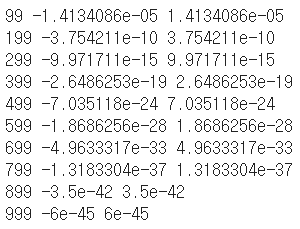 학습이 지날 수록 예측 값이 목표에 가까웠던 1에 다가가며, 에러 값도 줄어드는걸 확인할 수 있습니다.