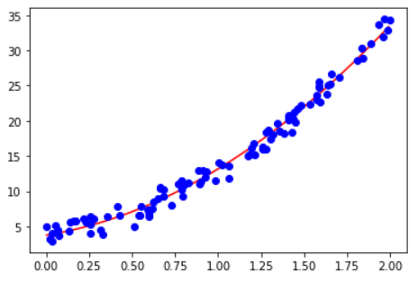 sklearn에서는 LinearRegression은 제공합니다. 해당 클래스와 다항 회귀를 위해서 기존 데이터를 다항 회귀에 적합한 데이터로 바꾸어주는 PolynomialFeatures 클래스를 이용하여 다항 회귀 모델을 추정할 수 있습니다.