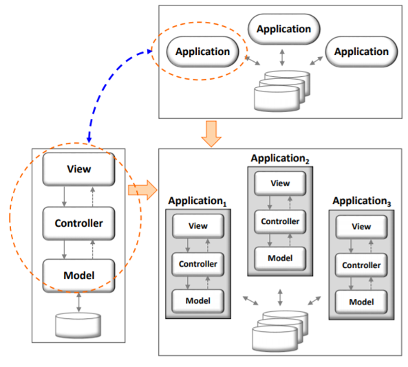 시스템을 View, Control, Model 세 가지 Layer로 나눈 방식의 Architectural Style