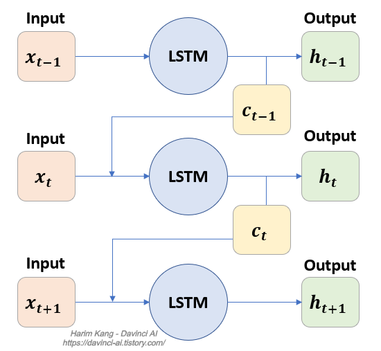 간단한 RNN의 구조로는 위와 같은 장기 의존성 문제가 발생합니다. 이를 해결하기위해서 제안된 RNN의 변형 구조가 바로 LSTM입니다.