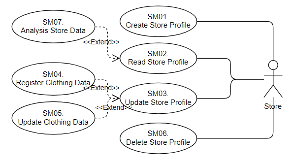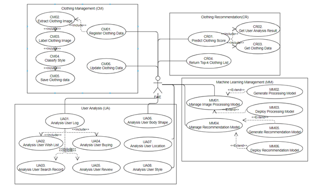 Ex : 제가 기획한 옷 스타일 분류 어플리케이션의 Use Case Diagram입니다.