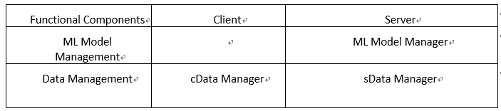 예제의 경우, ML model Manager를 Server에, Data Manager는 Client와 Server 양쪽에 배치하였다. 양쪽 배치 시, Client Component 앞에는 c를, Server Component 앞에는 s를 붙인다.