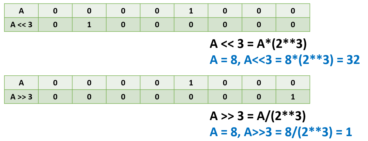 Shift 연산(<<, >>): 전체 비트를 하나씩 왼쪽 또는 오른쪽으로 옮기는 연산입니다. (그림에는 32라고 되어있지만 결과 값 64가 맞습니다. 오타 피드백: phy님 감사합니다 :D)