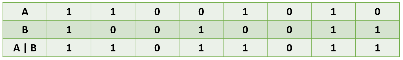 1 | 1 = 1, 1 | 0 = 1, 0 | 1 = 1, 0 | 0 = 0
