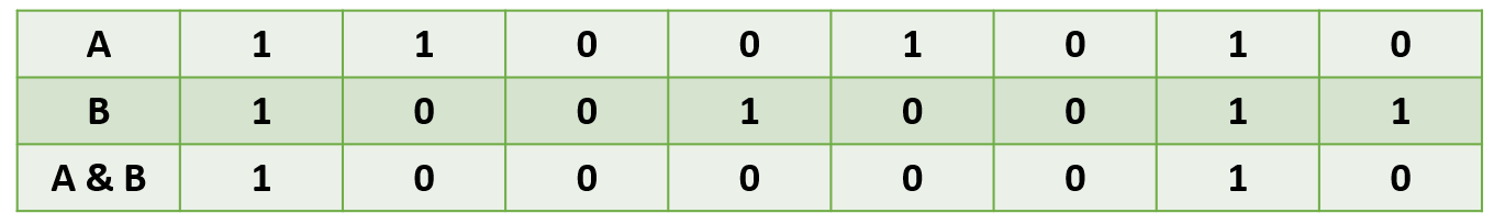 AND(&): 2진법에서 1은 True, 0은 False입니다. 2진법 수의 각 자리들을 && 연산해줍니다.