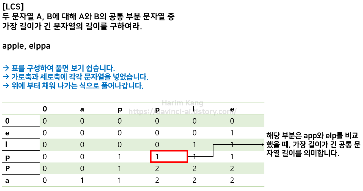 가장 긴 공통 문자열은 문자열 A와 B가 주어질 때, A의 부분 문자열 이면서, B의 부분 문자열인 문자열 중 가장 긴 문자열을 의미합니다.