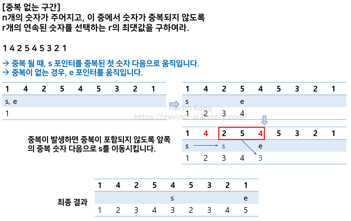투 포인터와 유사합니다. 투 포인터와 다른 점은 s와 e 두 포인터간의 거리를 유지한다는 점입니다.