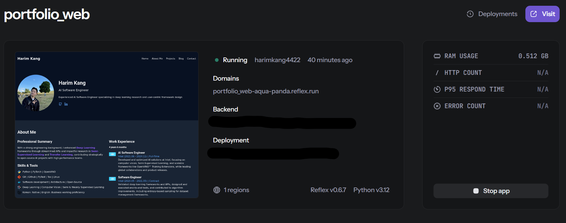 배포된 애플리케이션은 Reflex의 모니터링 기능을 통해 상태를 확인하고, 실시간으로 문제를 해결할 수 있습니다.