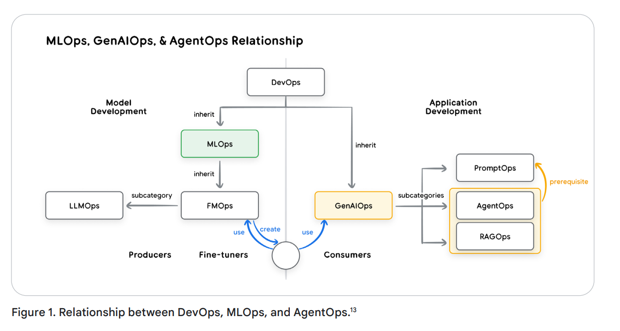 새로운 관행이 기존 관행을 완전히 대체하는 것은 아닙니다. AgentOps는 기존의 DevOps 및 MLOps를 여전히 필요로 하며, 이들은 AgentOps의 기반(Dependencies)이 됩니다.