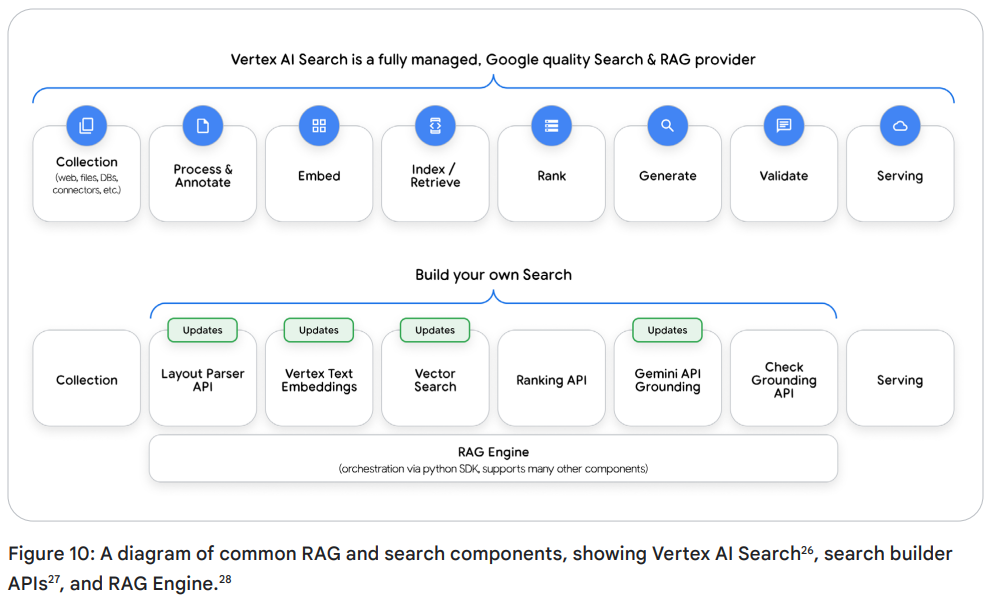 Vertex AI Search와 같은 도구는 고품질의 검색 기능을 제공하며(그런가..?), RAG Engine은 전체 파이프라인을 쉽게 오케스트레이션할 수 있도록 지원합니다. (-> 아무튼 Agentic RAG를 도입하기 전에, 위와 같은 방식을 통해 검색 자체를 먼저 개선시킨 이후에 에이전트 도입을 검토하자라는 의미)