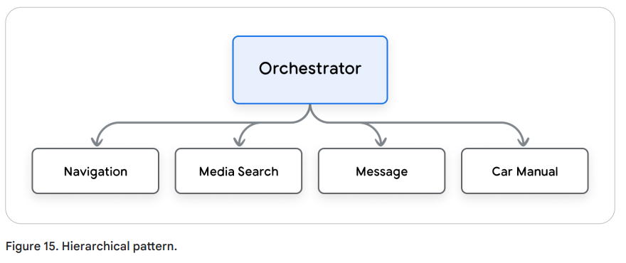 계층적 패턴 (Hierarchical Pattern):중앙의 오케스트레이터 에이전트(Orchestrator Agent)가 쿼리를 분류하고 해당 작업을 처리할 특화 에이전트로 라우팅합니다. 오케스트레이터 에이전트는 사용자의 쿼리를 분석하여 도메인과 의도를 파악하고 가장 적합한 에이전트로 요청을 전달합니다. 여러 턴에 걸쳐 대화 맥락을 유지하며, 특화 에이전트가 만족스러운 답변을 제공하지 못할 경우 대체 전략을 관리합니다.
