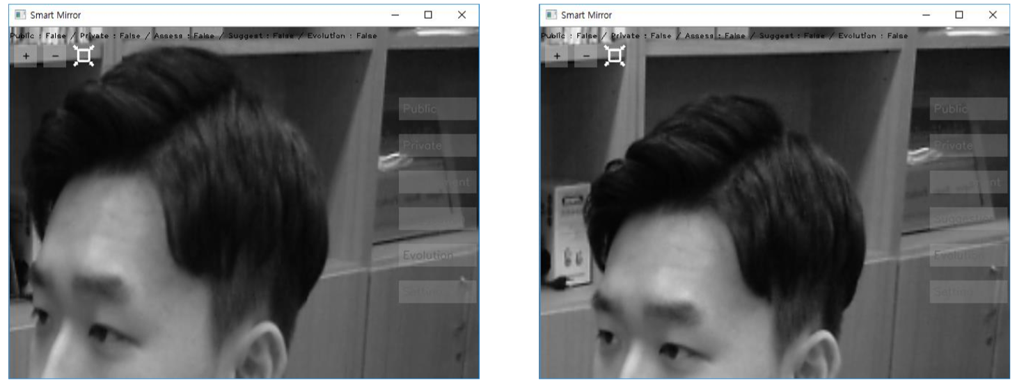zoom in과 out 기능은 scale값을 조정하여 기능을 하도록 코드를 구성하였습니다.